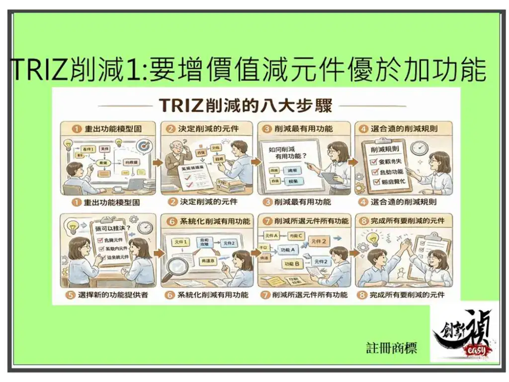 關鍵字: TRIZ、削減法 (Trimming)、創新思維、理想系統、精實設計。